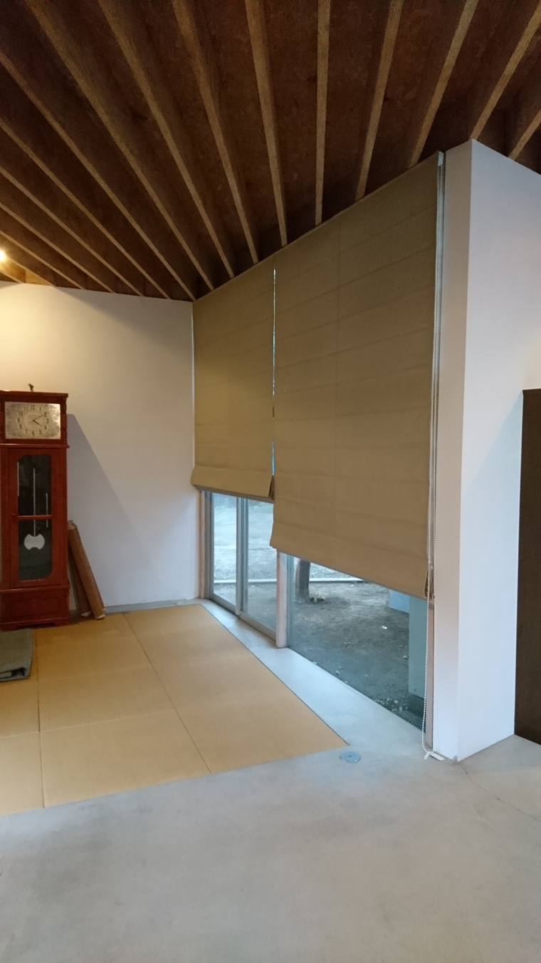 ギャラリーに遮光をかねたシェードをつけました。明かりの調節や目線の調節が上げ下げで可能になりました。なりより高級感が出ました。